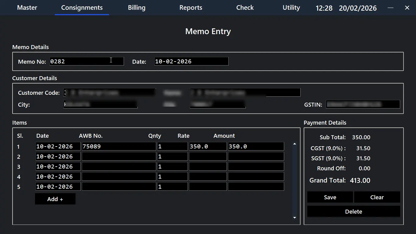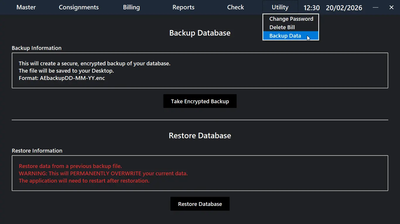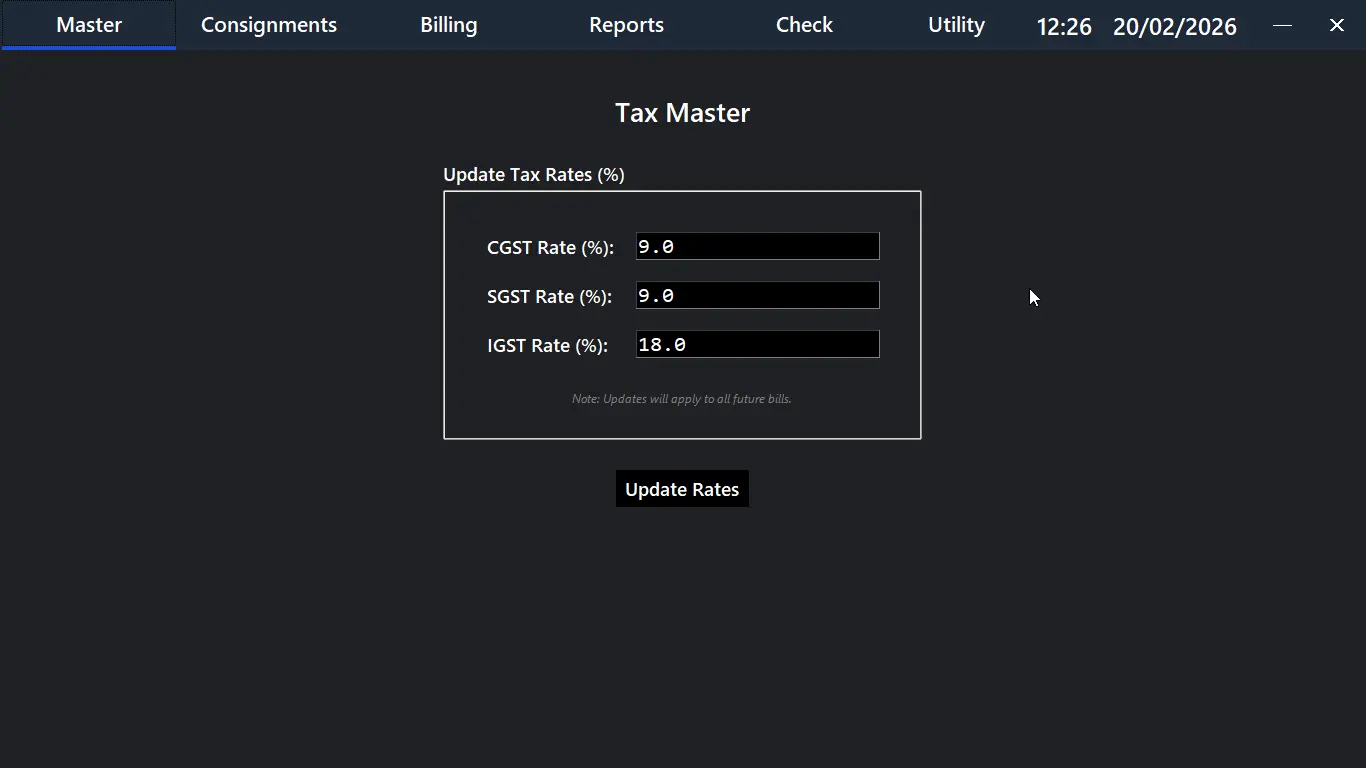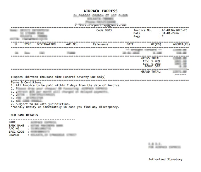 It seamlessly handles complex daily operations such as secure billing, comprehensive consignment management, robust master data storage, and complete invoice generation, ensuring all shipment records and financial calculations are accurately maintained in the generated logistics reports.